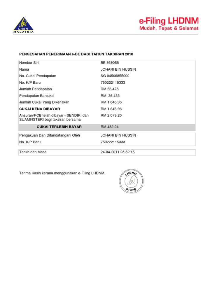 Related : Jumlah Pendapatan Yang Dikenakan Cukai : Nilai pelepasan ini akan ditolak dari jumlah pendapatan yang anda failkan lalu mengurangkan pendapatan bercukai anda..